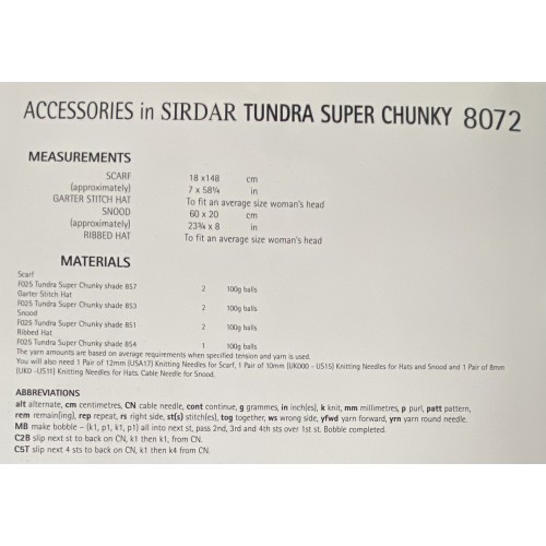 Sirdar Pattern 8072 Super Chunky
