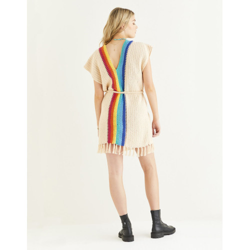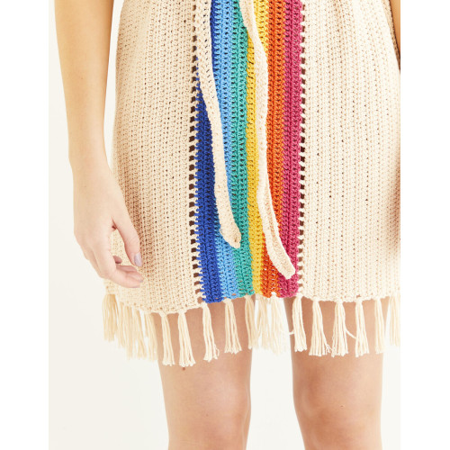 We designed this relaxed crochet dress with a tie at the waist, so you don’t have to worry about shaping. The simple half trebles and fringed hem are perfect for beginners.