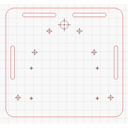140 x 130mm x 3mm with 4 x slots and 11 holes cut out as pdf sent