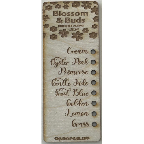 laser cut and Engraved Blossom and Buds 2024 colour chart